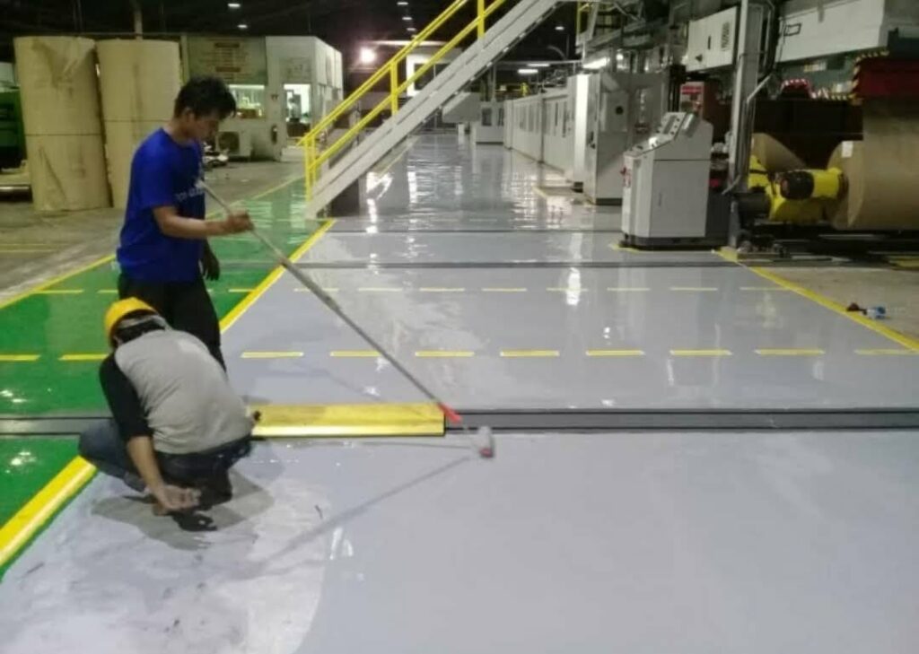 Ketebalan cat epoxy berbeda menyesuaikan dengan fungsi dan kebutuhan ruangan atau lokasi kerja.